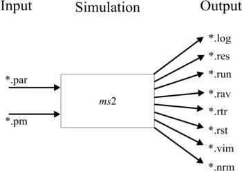 The simulation tool ms2 requires one main input file (*.par) to specify the simulation parameters and at least one molecular force field model file (*.pm) for the considered species.